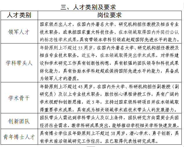 各类人才除享受按国家有关规定提供的工资、保险、福利待遇外,学校还提供其他人才待遇,详情参考下表。